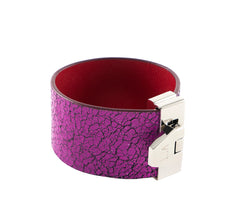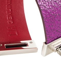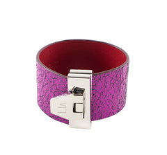 • LIA Spring Hinge Bracelet magenta leather and palladium finish metal.