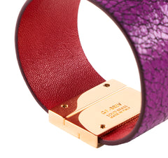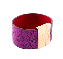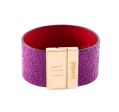 - LIA Spring Hinge Bracelet magenta leather and rose gold finish metal.