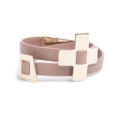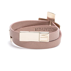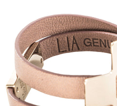 - LIA Double Tour Charms Bracelet beige leather and pale gold-finish metal.