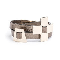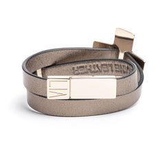 - LIA Double Tour Charms Bracelet in bronze leather and pale gold-finish metal.