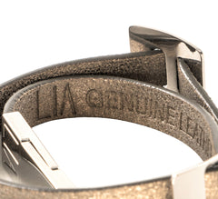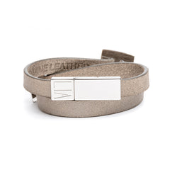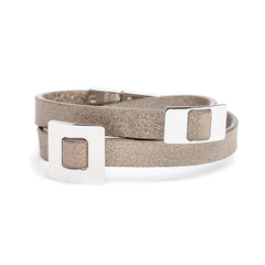 - LIA Double Tour Charms Bracelet soft grey leather and Palladium finish metal.