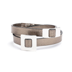• LIA Double Tour Charms Bracelet bronze leather and Palladium finish metal.