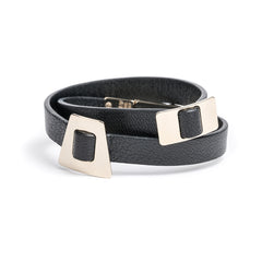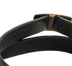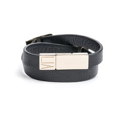 • LIA Double Tour Charms Bracelet in black leather and pale gold-finish metal.