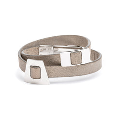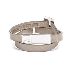 - LIA Double Tour Charms Bracelet soft grey leather and Palladium finish metal.