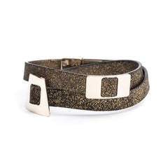 - LIA Double Tour Charms Bracelet in goldblack leather and pale gold-finish metal.