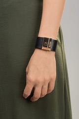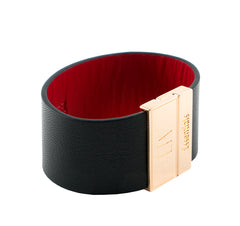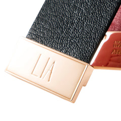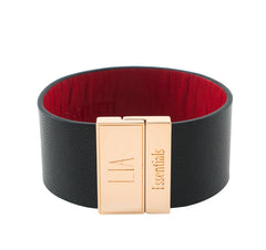 - LIA Magnetic Fitting Bracelet black leather and rose gold finish metal.