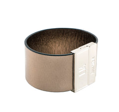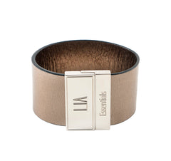 - LIA Spring Hinge Bracelet bronze leather and palladium finish metal.