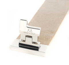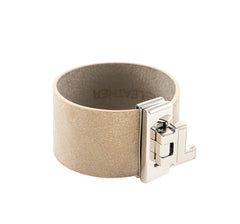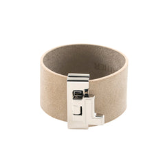 • LIA Spring Hinge Bracelet soft grey leather and palladium finish metal.