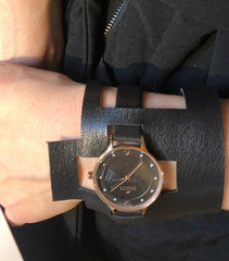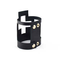 - LIA cut out bracelet in black leather and pale gold finish metal.