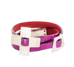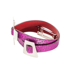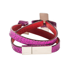 • LIA Double Tour Charms Bracelet in magenta leather and palladium finish metal.