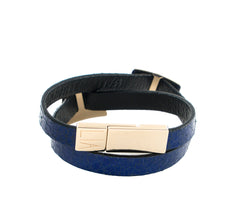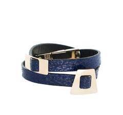 • LIA Double Tour Charms Bracelet darkblue leather and Palladium finish metal.