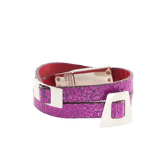 - LIA Double Tour Charms Bracelet in magenta leather and palladium finish metal