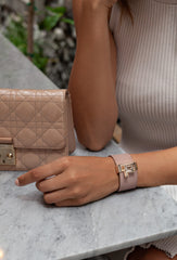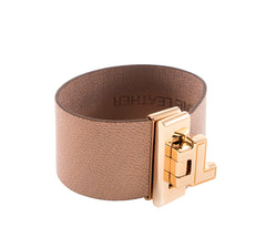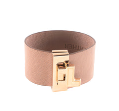 - LIA Spring Hinge Bracelet beige leather and rose gold finish metal.