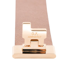Band width : 30 mm Composition : 100% Italian leather band 24K Rose Gold Plated Eco-Brass hardware Made in Italy